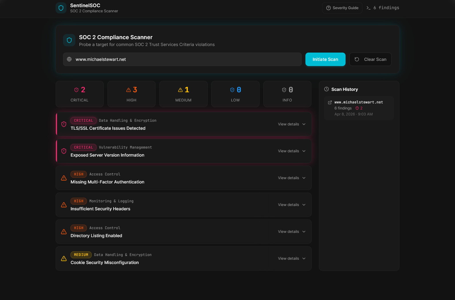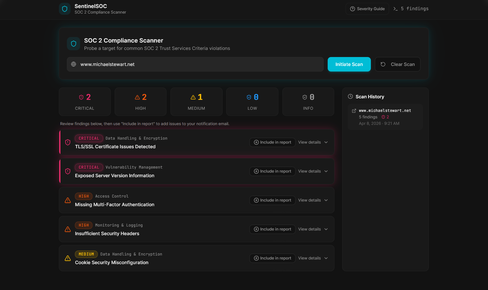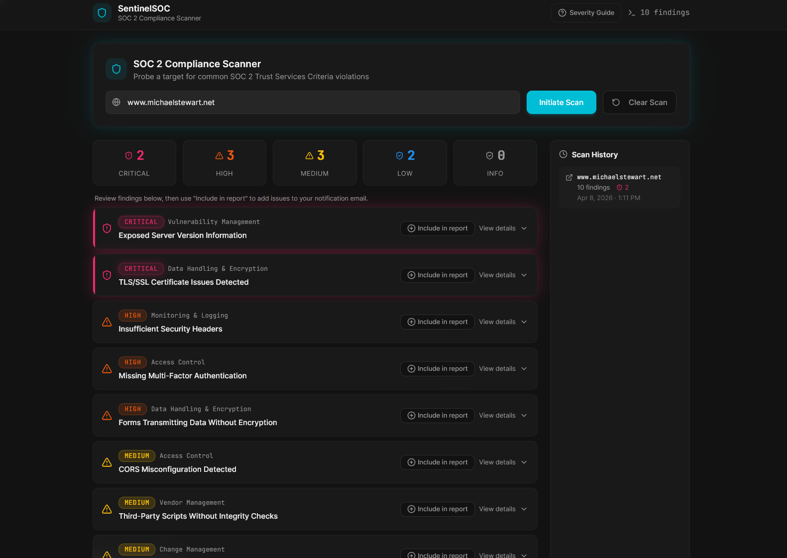 I created an application that looks for typical SOC 2 violations on websites and hosted (SaaS) applications. The prompts or "conversations" that I used to create the application are available to download.