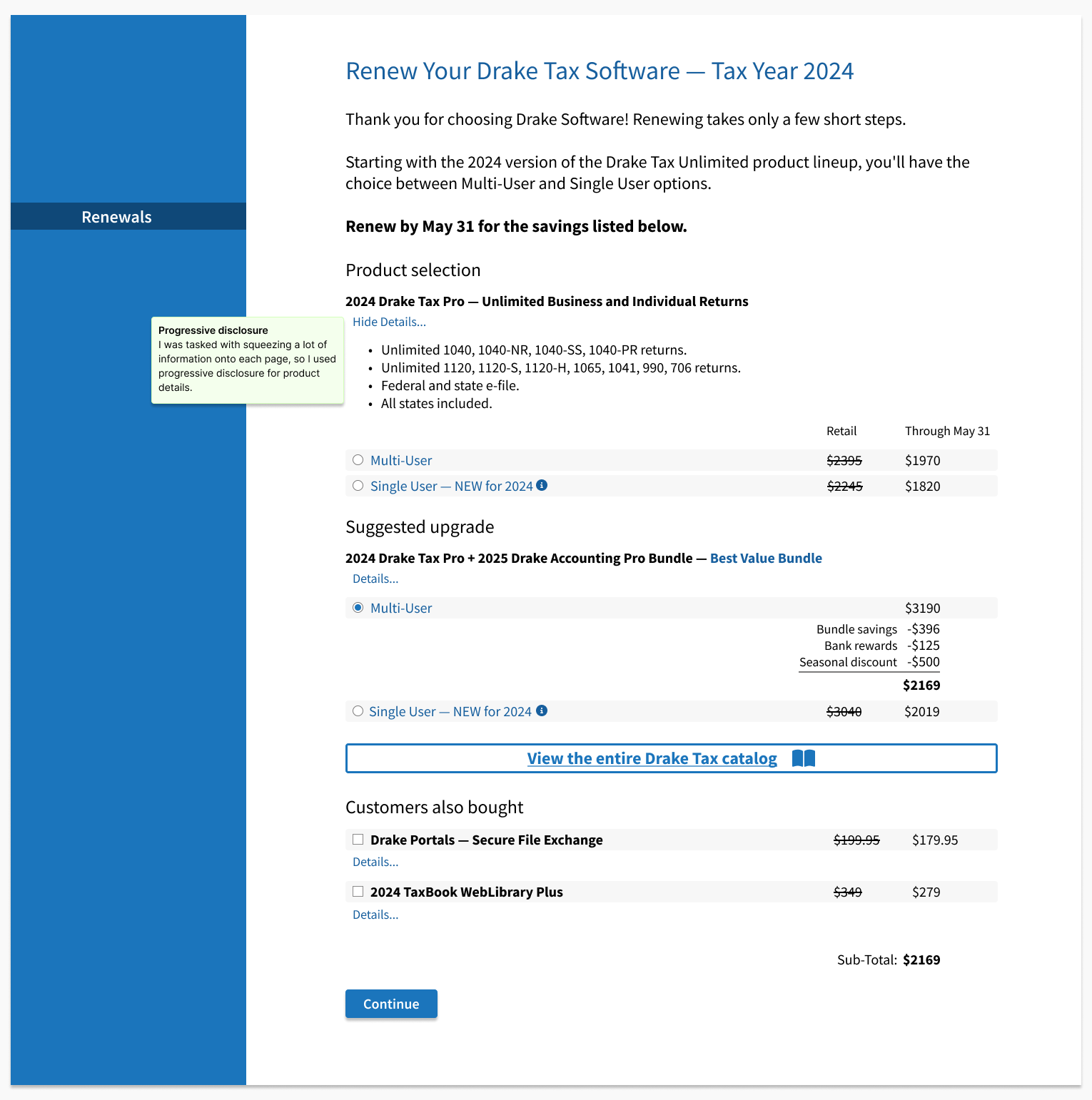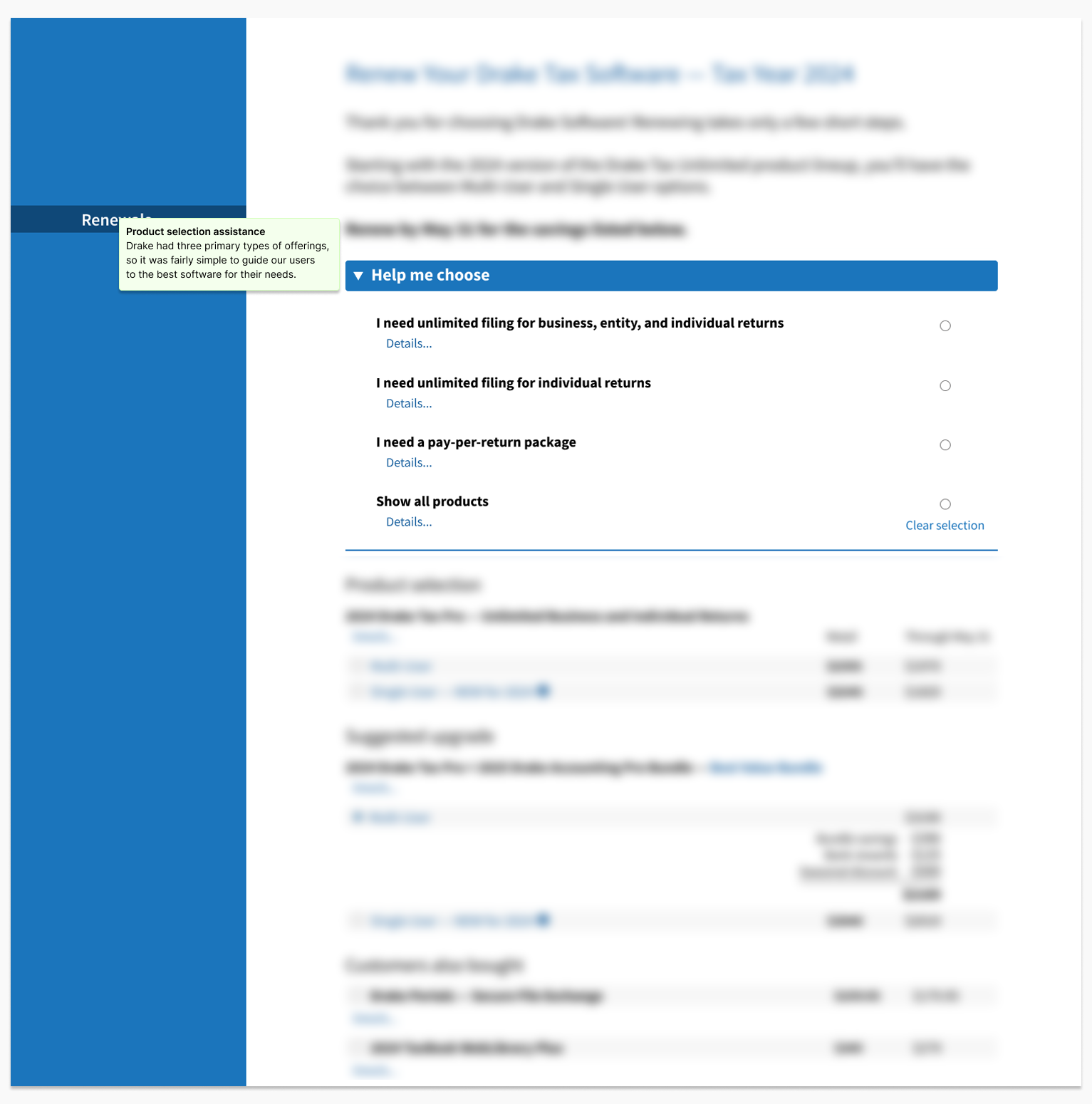 My primary design goal was to simplify and streamline the renewal selection process for users, making it as intuitive and efficient as possible.
