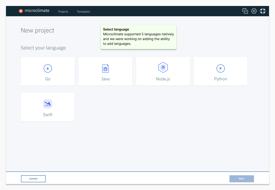Project Goal & Outcome : Born from an IBM Cloud developer’s vision, Microclimate went from concept to MVP in a year. It was successfully released on the IBM Bluemix Cloud Application Platform.
