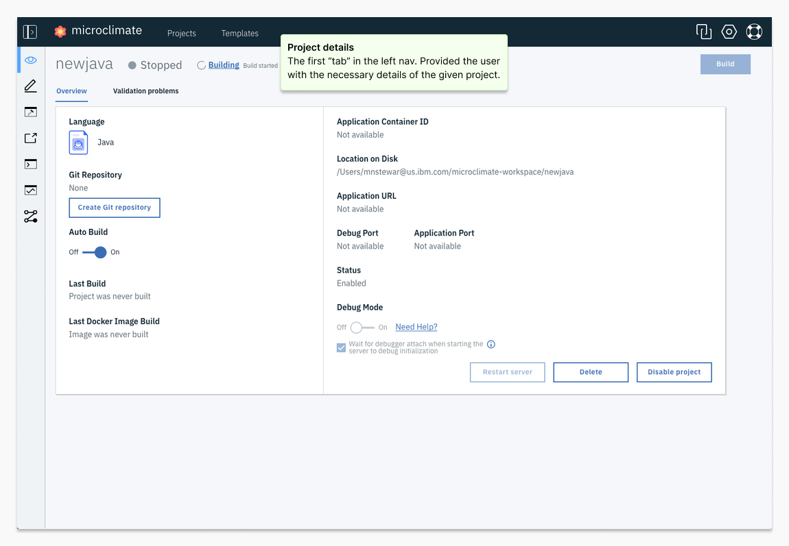 As the UX Designer for Microclimate, I led the user-centered design process, ensuring the product met the needs of developers like our primary persona, Jane. My responsibilities included: